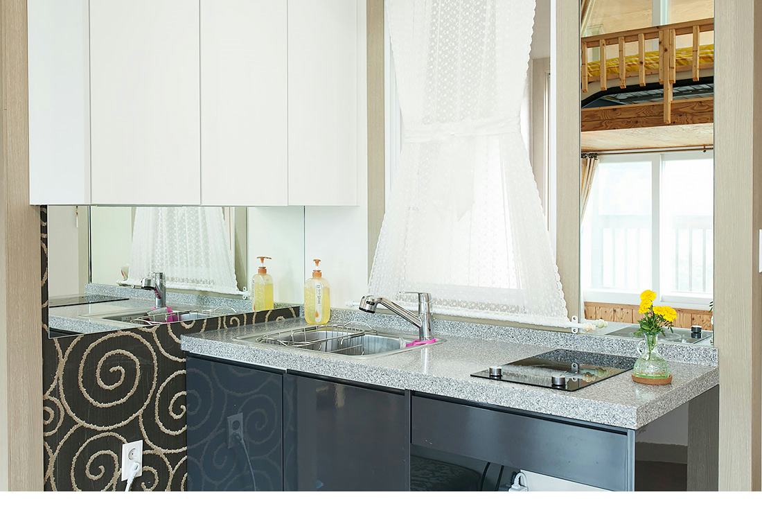 바람소리2 구 조 넓 이 원룸형(침대룸1개+화장실1개) / 25평(약82㎡) / 복층 기 준 인 원 기준 4명(최대 8명) / 4명 초과시 추가요금 발생 구 비 시 설 침대,협탁,스탠드,TV,에어컨,옷걸이,테이블,헤어드라이어,전기밥솥,식기일체,조리기구일체,식탁,무선전기주전자,샴푸,린스,바디클렌저,목욕용품일체,비누,치약,와이파이(Wifi) 예약하기